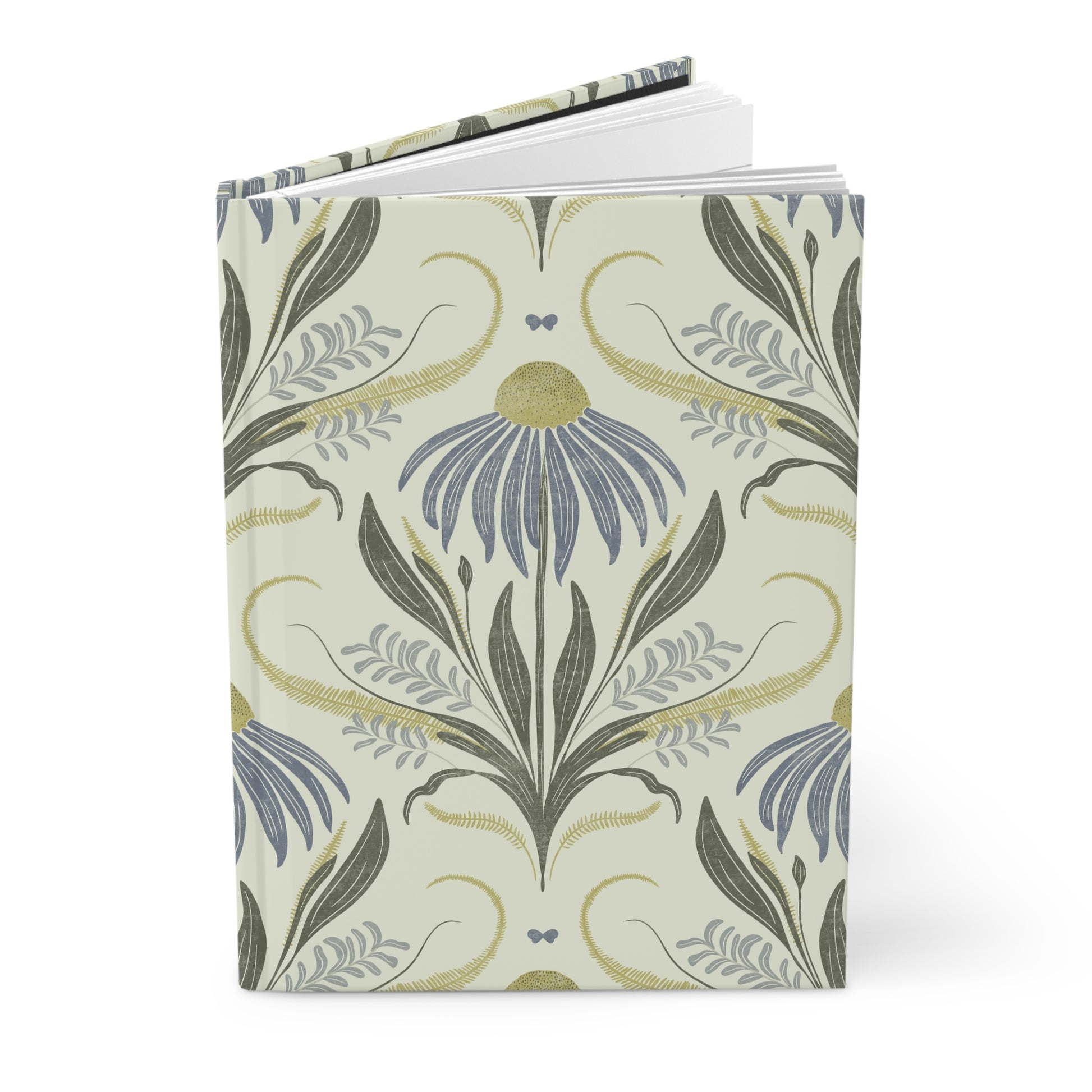 This matte hardcover journal brings calm and color to everyday notes. The sewn casewrap binding lets the book open flat and bend easily in your hands while 150 lined pages give plenty of room for plans or pages you choose to tear out. The tough matte-laminated cover resists wear and keeps the floral print looking bright through daily use. Tuck it into a tote for coffee shop journaling, keep it on your nightstand for end-of-day thoughts, or carry it to workshops and sketch sessions where its cheerful pattern sparks ideas.
