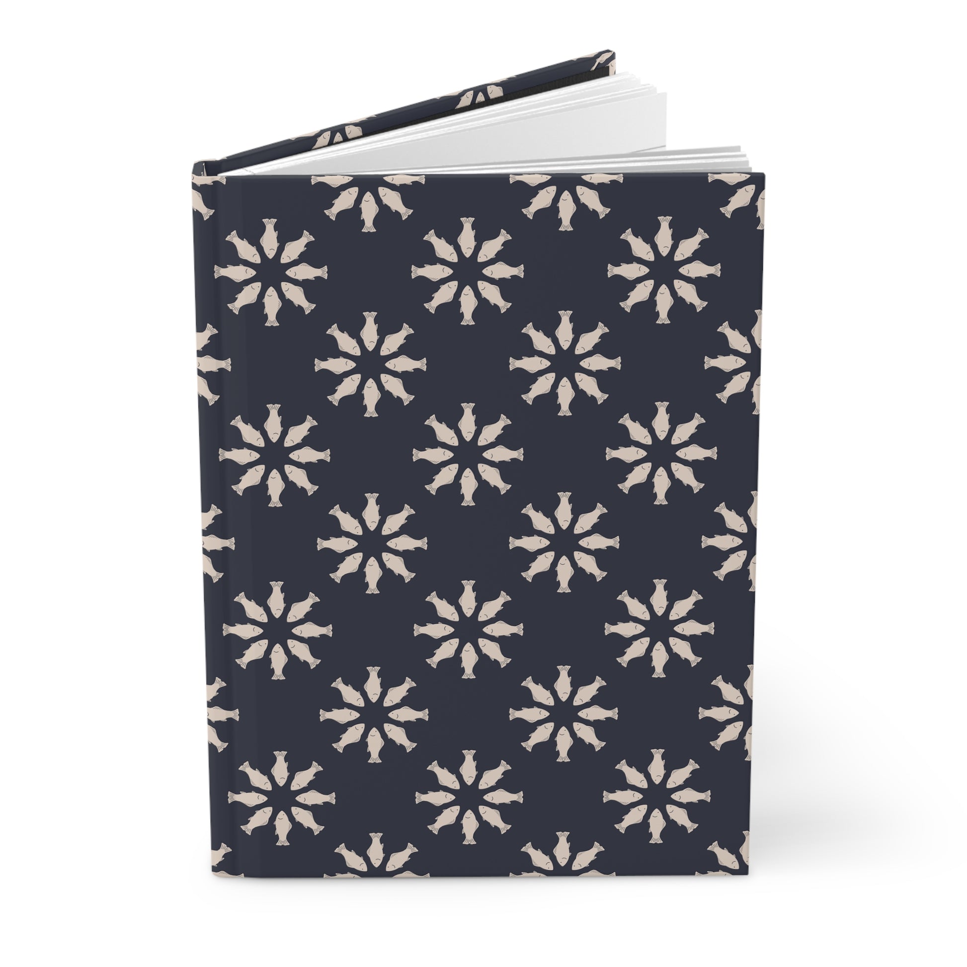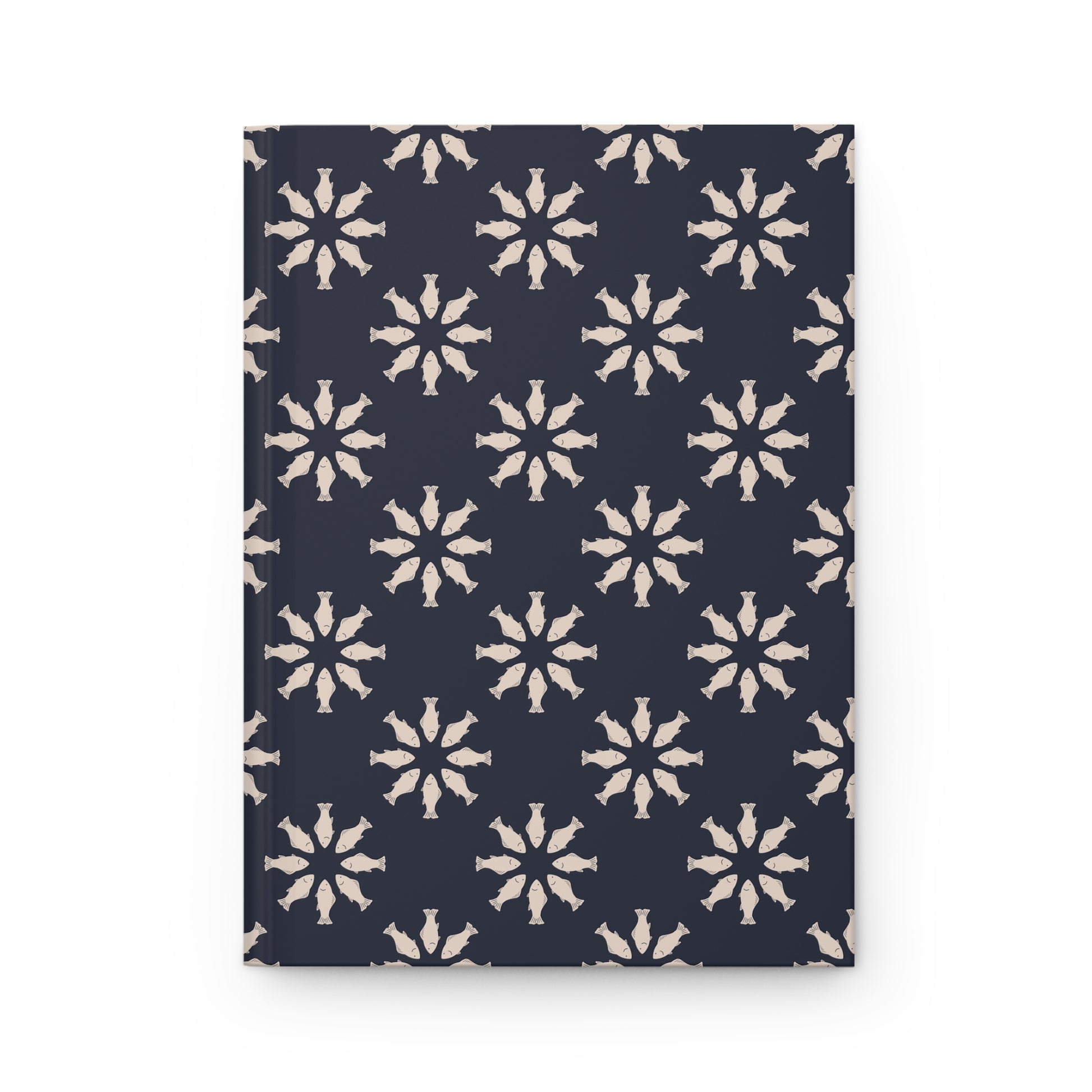 Find calm with every page turn in this hardcover journal featuring my hand-drawn Circle of Tides Navy pattern — a soothing ring of navy fish moving in gentle mandala formation. Soft, minimalist, and meditative, it's perfect for mindful writing and quiet moments.