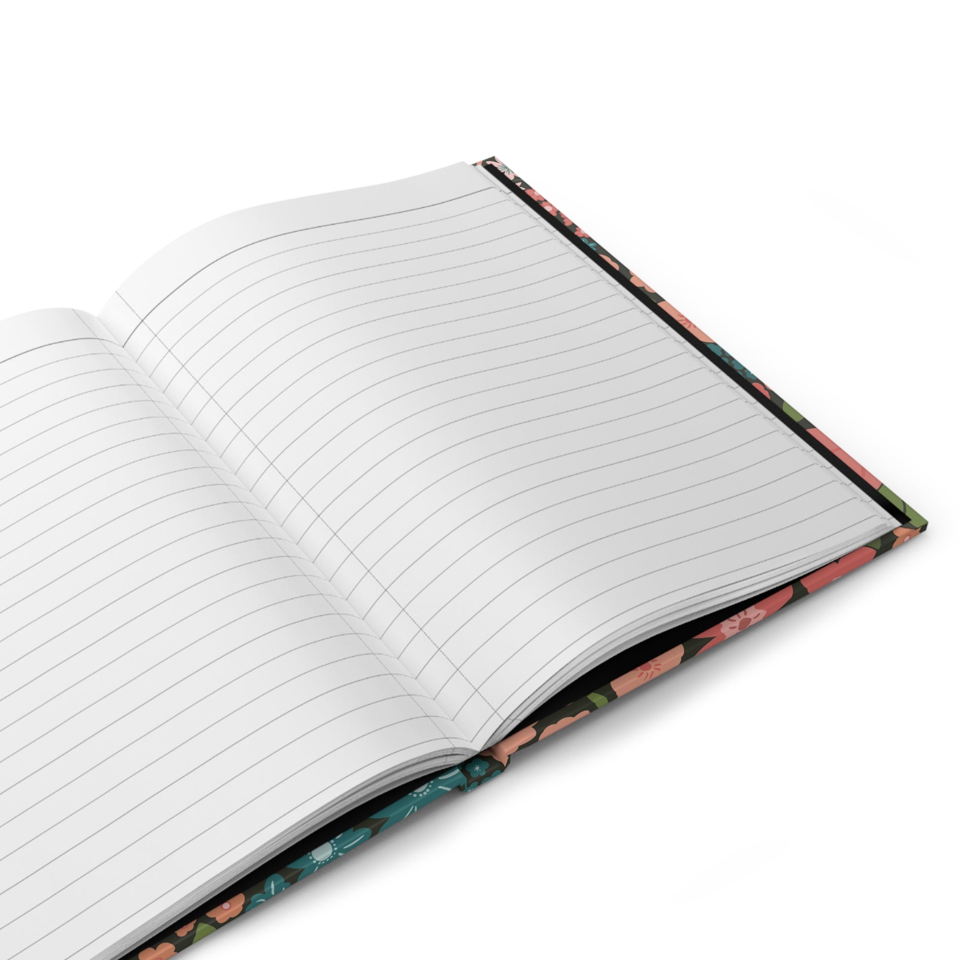 Garden Whimsy Floral in Teal & Coral on Deep Green Hardcover Journal