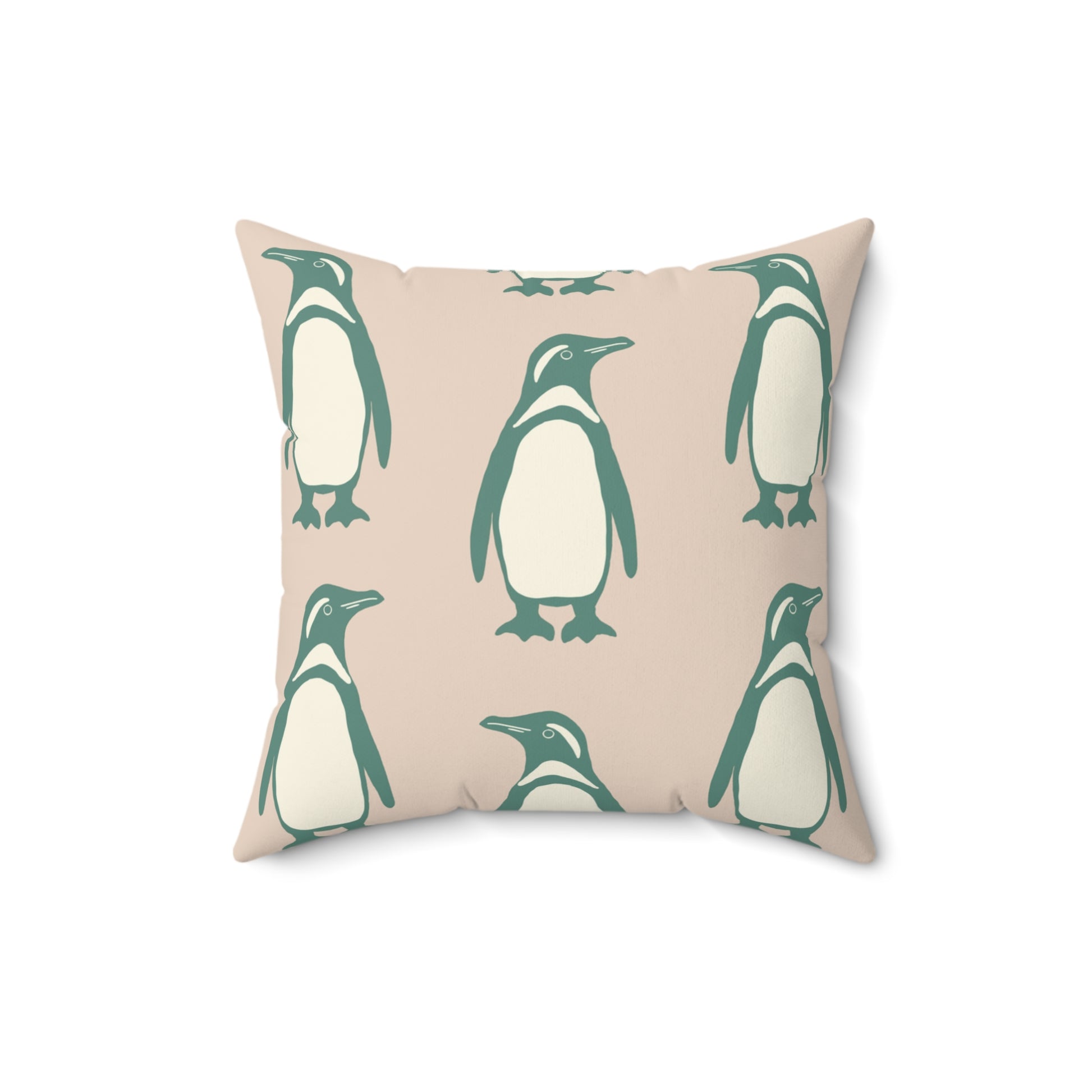 Penguin Teal & Peach Faux Suede Square Pillow