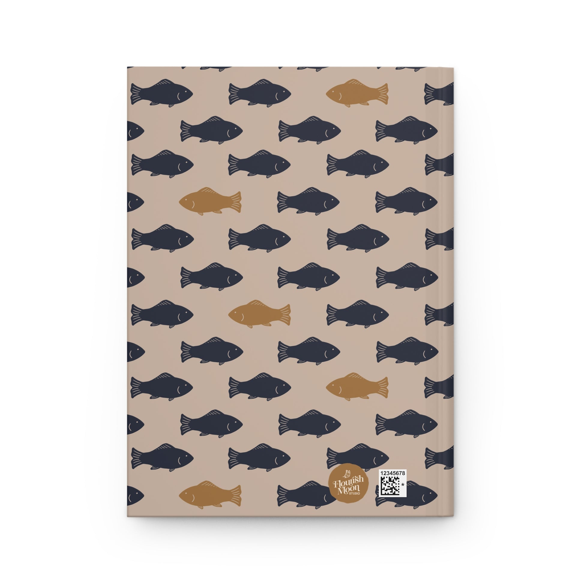 Let your thoughts drift like gentle ocean currents with this beautiful hardcover journal featuring my School of Wanderers pattern. Navy and golden fish wander across a soft sandy backdrop, creating a peaceful, whimsical setting for your writing. It’s perfect for daily journaling, sketching ideas, or capturing meaningful moments throughout your day. The School of Wanderers journal is a lovely gift for creative souls who adore coastal charm or a great gift for those wanting to document their waterway discoveries.