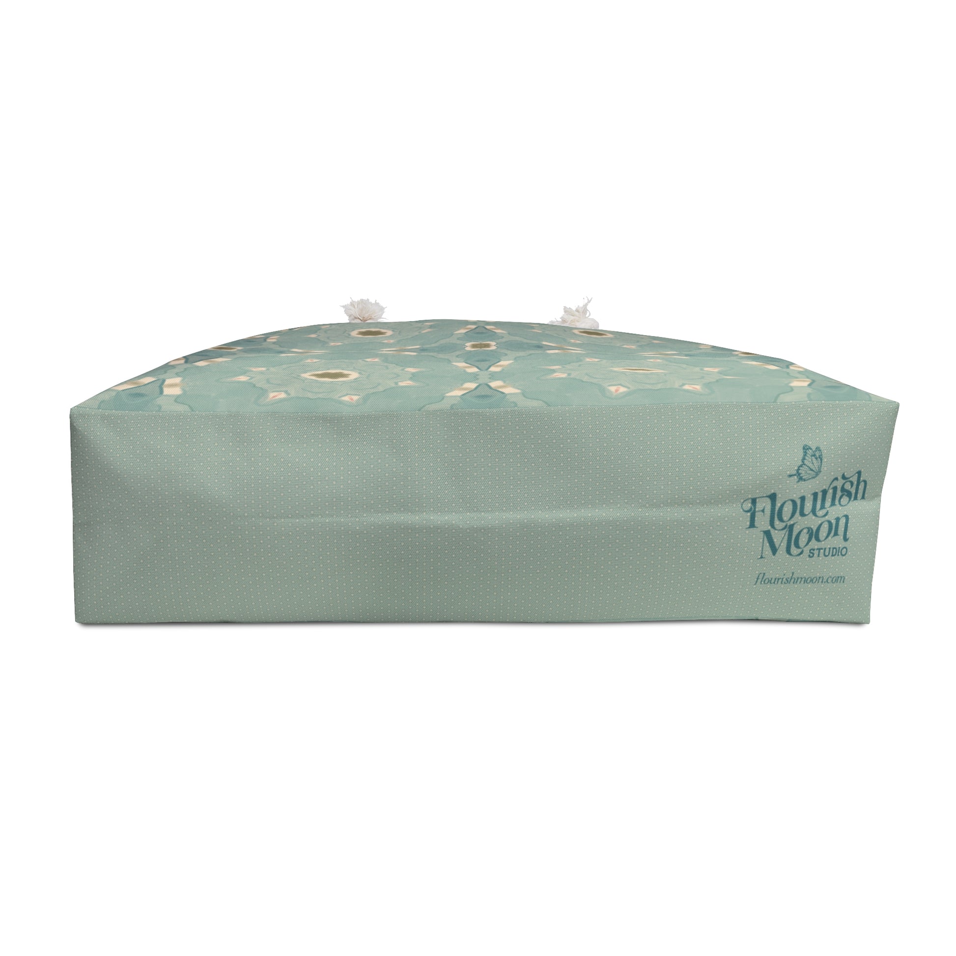 Carry a little calm wherever you go. The Sea Glass Echo Weekender Bag blends soft seafoam hues with an elegant, symmetrical floral design inspired by ocean ripples and reflected light. Spacious and beautifully crafted, it’s perfect for weekend getaways, coastal escapes, or creative retreats.